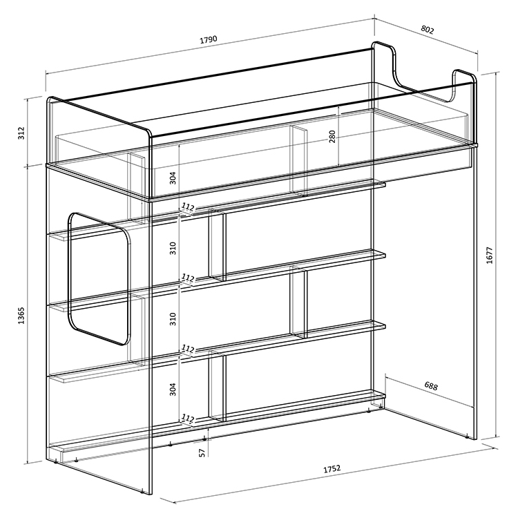 Высота кровати чердака всего 1677 мм.